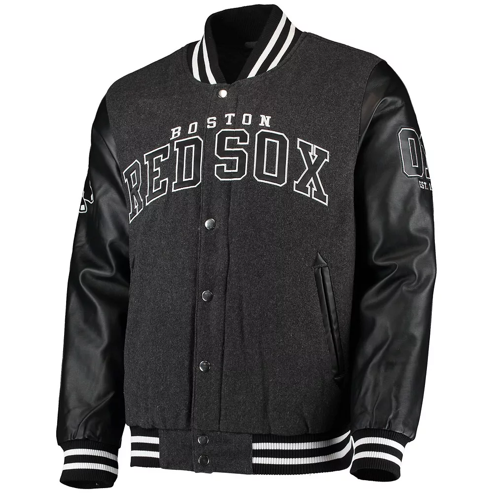 Flaunt your Boston Red Sox devotion in sophisticated style with this Power Play full-zip jacket from G-III Sports by Carl Banks. It features large Boston Red Sox graphics on the front, back and faux leather sleeves. Slip pockets also make warming up your hands easy.