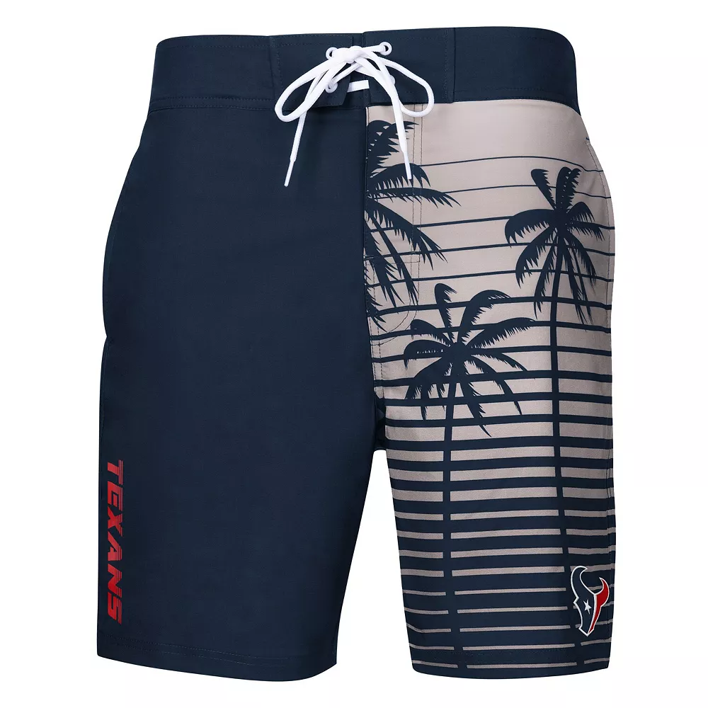 Express your Houston Texans fandom on the water with these Tropical swim trunks from G-III Sports by Carl Banks. They feature a bold team logo on the left leg with lettering on the right and sublimated palm trees. These trunks also include two side pockets with a back right pocket for extra storage as you rep your Houston Texans.