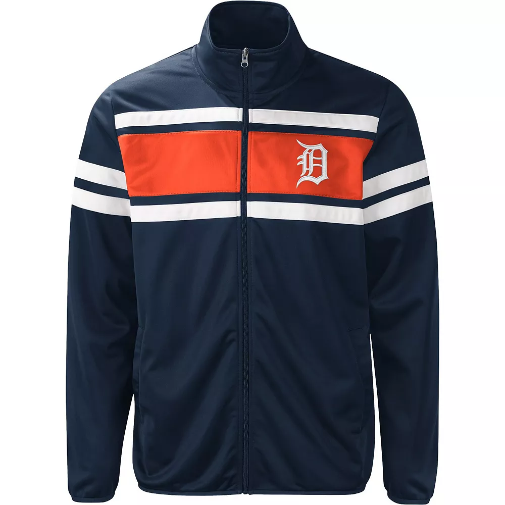 Rep your Detroit Tigers in a bold way with this Power Pitcher full-zip track jacket from G-III Sports by Carl Banks. It features vivid team colors all over and Detroit Tigers graphics on the front and back to put your fandom on full display. Plus, slip pockets keep essential items easily accessible while the lightweight construction adds comfort to your day.