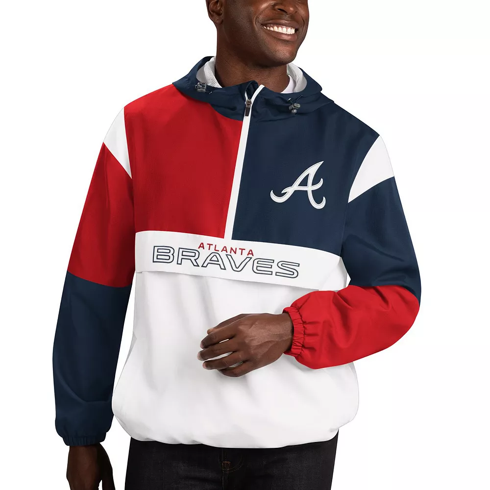 Boost your collection of official Atlanta Braves apparel by adding this Fair Catch half-zip hoodie to your rotation. The team’s logo is embroidered on the chest, which sits on one of the several multi, team-colored blocks that comprise this top. Adjustable toggles for the hood, as well as the elastic cuffs and hem, allow you to maintain your desired fit during every wear, making it perfect for Atlanta Braves game day.