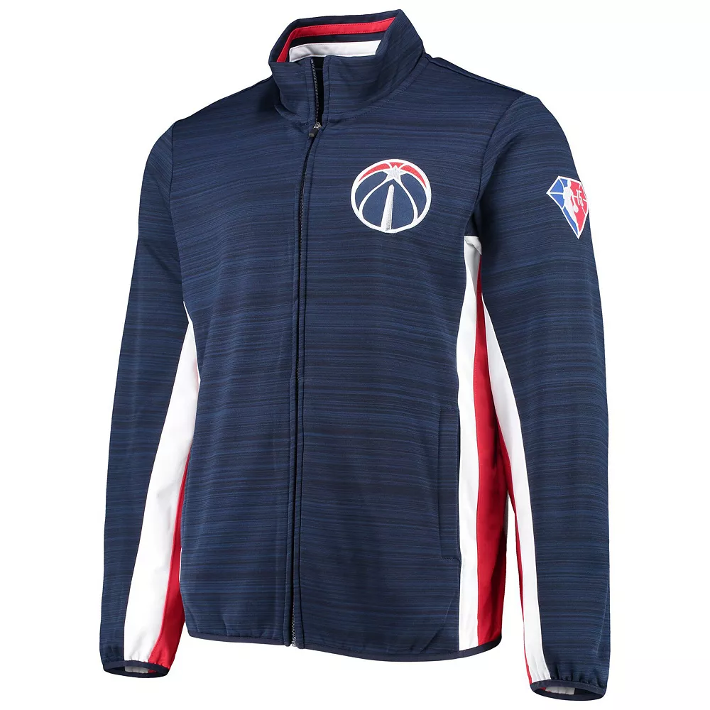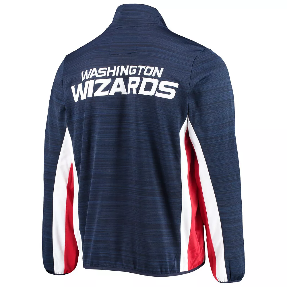 Make a strong statement about your loyalty to the Washington Wizards with this Power Forward full-zip track jacket from G-III Sports by Carl Banks. Twill appliques of the Washington Wizards logo on the front and the team name across the back are accentuated by coordinating stripes under the arms and inside the collar. Space-dye fabric adds eye-catching appeal, and microfleece lining provides extra softness. Plus, slip pockets keep personal items within easy reach.