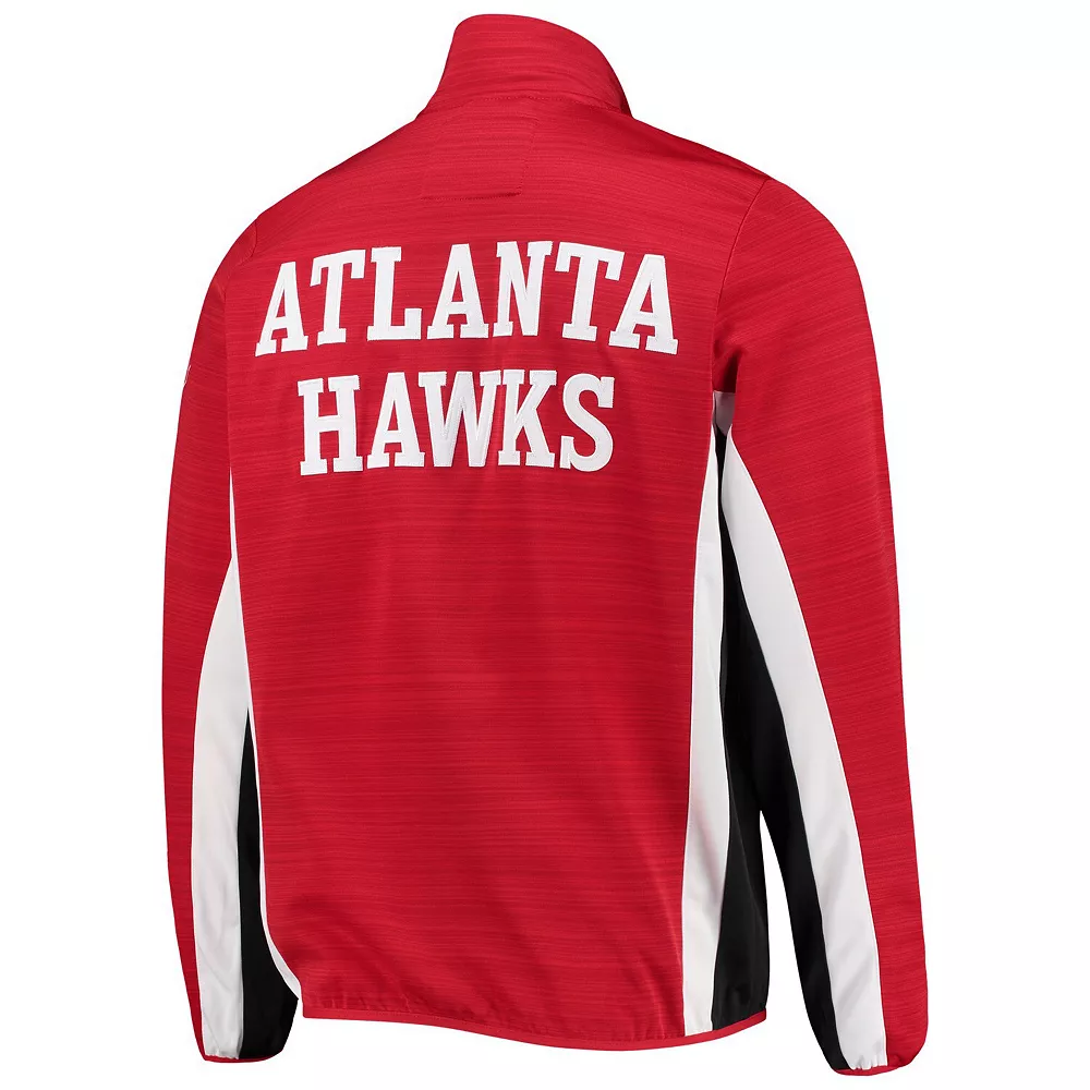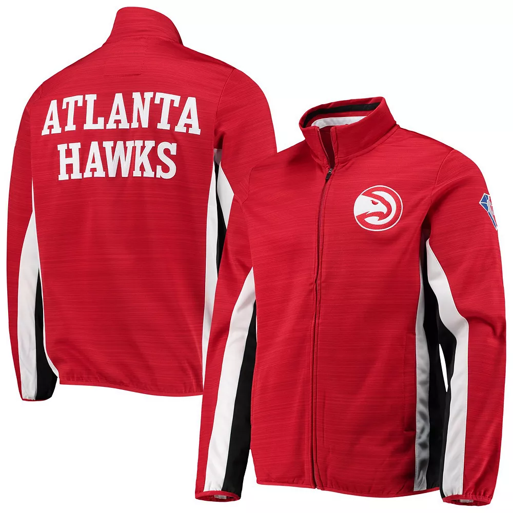 Make a strong statement about your loyalty to the Atlanta Hawks with this Power Forward full-zip track jacket from G-III Sports by Carl Banks. Twill appliques of the Atlanta Hawks logo on the front and the team name across the back are accentuated by coordinating stripes under the arms and inside the collar. Space-dye fabric adds eye-catching appeal, and microfleece lining provides extra softness. Plus, slip pockets keep personal items within easy reach.
