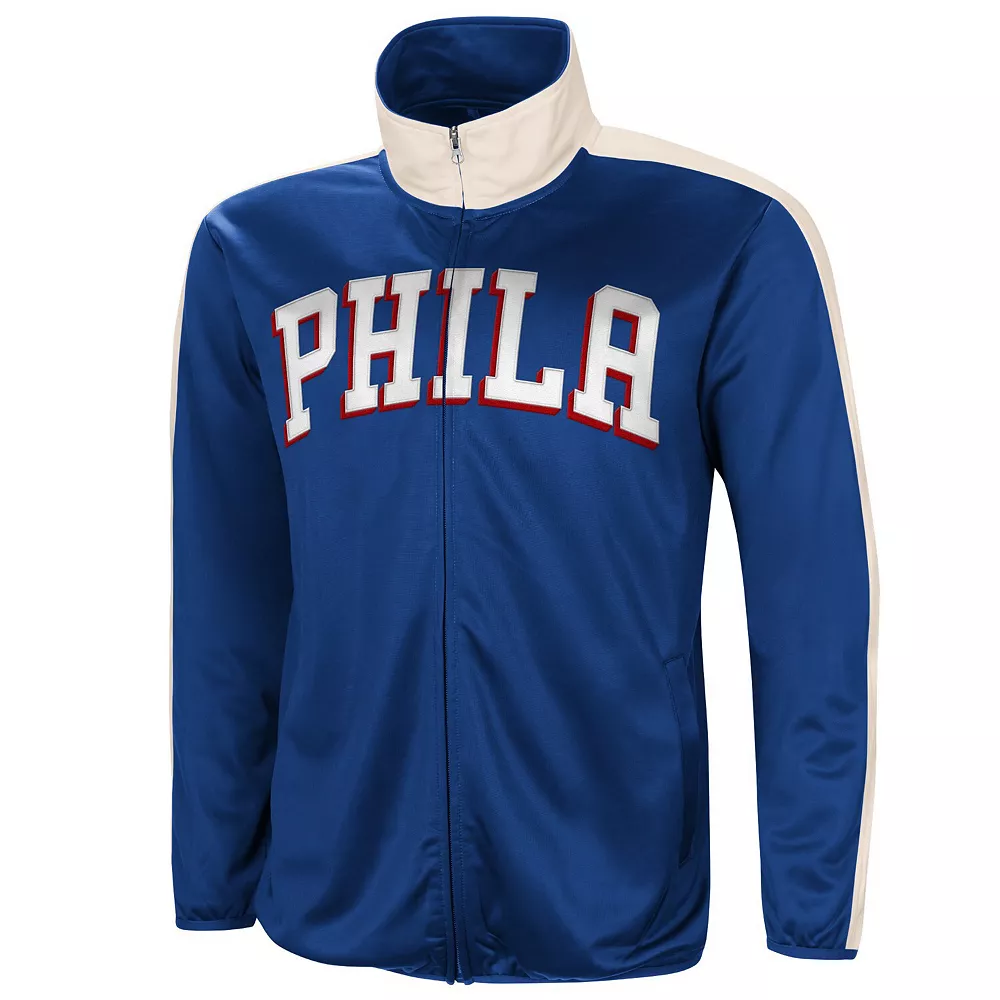 Show off your passion for the Philadelphia 76ers on cooler days in a sleek manner by sporting this Zone Blitz Tricot full-zip track jacket from G-III Sports by Carl Banks. Along with contrasting sleeve stripes, it features distinct Philadelphia 76ers graphics on the front and back. Reach for this track jacket when you want a bold look that will set you apart from the crowd on a brisk day.