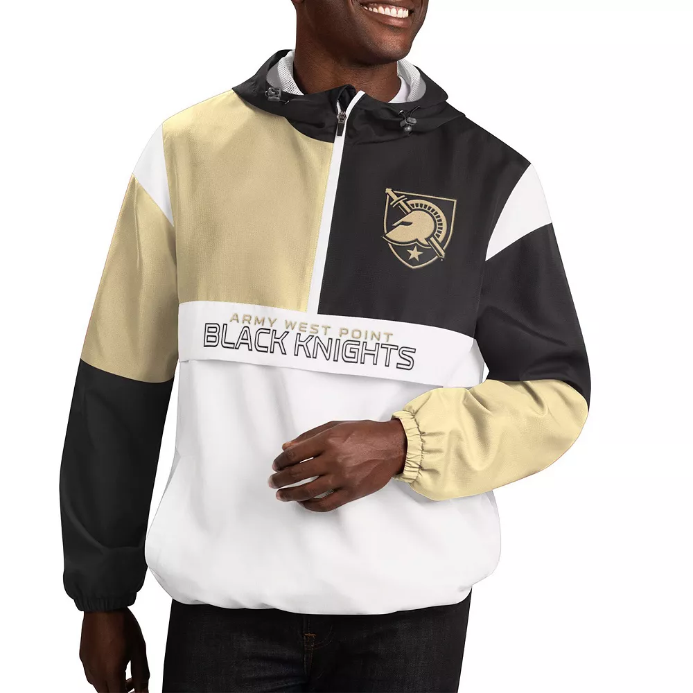 Rep the Army Black Knights in style with this College Fair Catch half-zip from G-III Sports by Carl Banks. The front pouch pocket keeps your essentials safe, while the mesh-lined hood offers a bit of extra coverage. Best of all, the bold colorblock design with signature Army Black Knights details makes for the ultimate game day layer.